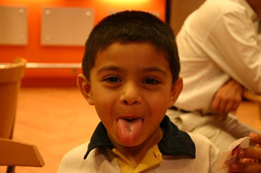 Funny? Yea and Gaurav was equally naughty. While his parents were busy in their talk, he approached my table and started asking me about my laptop. We became friends instantly and he gave me this funny stare. (3rd March 2004)